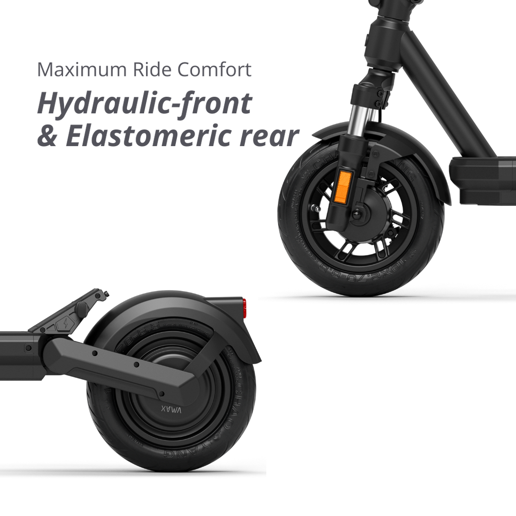 The New VMAX VX2 Gear gives you more hill climbing power than you'd ever expect from a single motor scooter and it comes with full suspension.
