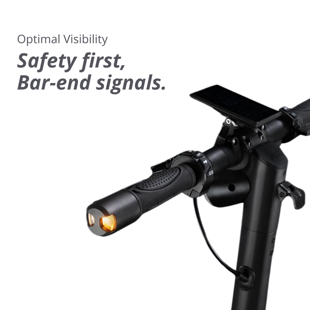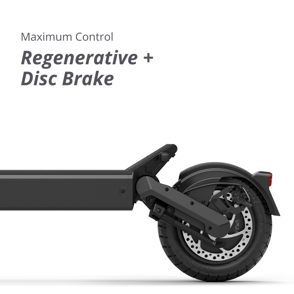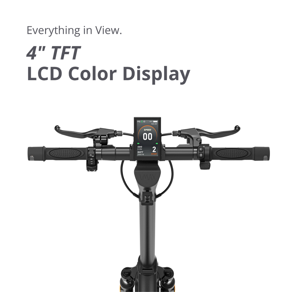 With a hill climbing spec of 40%, and a range of up to 68 miles (53 miles for the smaller battery version) you'll never need to get off and push! Stopping power comes from a rear disc brake plus regen, and a front drum brake. The waterproof 4" color TFT display is easy to read in brightest daylight, and we've refined every detail, including the stem-to-deck latch and smart app control. With the New VX4 you're ready for anything.