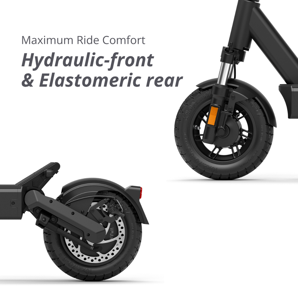 The New VMAX VX4, is not just our most powerful scooter, it's also our most comfortable! Motorcycle-style hydraulic front suspension with adjustable pre-load lets you optimize for your weight. Out back, it's got self-damping, non-linear elastomeric suspension that gets stiffer the harder you push it - perfect for any terrain. The powerful V-Core Max motor-controller and V-Torque Hub-motor combine to achieve an astonishing 2800 Watts of peak power, pushing the VX4 to a top speed of 34.9mph!