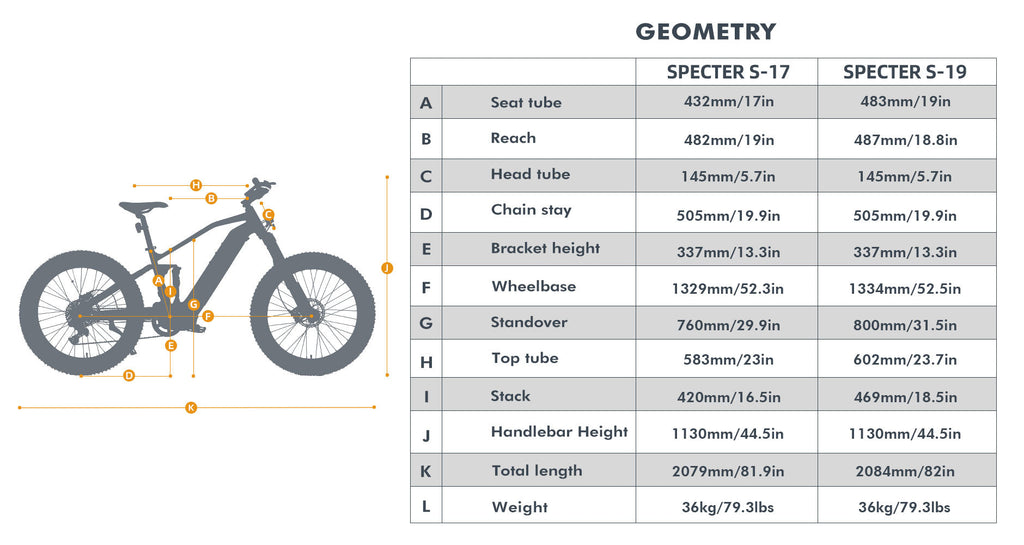 The 26" Fat Tire Model Specter S 1000W E-Bike Specifications